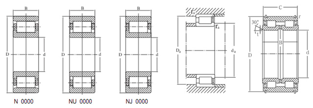 TWB SL04系列雙列滿滾子圓柱滾子軸承、具有較高的徑向承載能力和抗沖擊能力,而且可承受雙向軸向載荷,主要用于滾輪的支承。 該系列軸承具有一個外圈、兩個內(nèi)圈,裝配后由內(nèi)部鎖止結(jié)構(gòu)保持軸承成一整體。軸承外圈寬度比兩內(nèi)圈總寬度小1mm,外圈裝有止動環(huán),兩內(nèi)圈結(jié)合處有油孔和油槽,從而簡化了應(yīng)用部位的設(shè)計。 軸承兩側(cè)裝有鋼板沖壓密封圈(也可選接觸式橡膠或尼龍密封圈)。軸承零件表面可磷化處理,以保證軸承適應(yīng)露天環(huán)境的應(yīng)用。